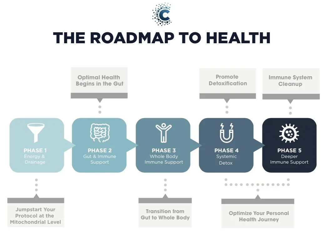 A typical protocol to open drainage pathways, eliminate toxins, remove parasites, and optimize mitochondrial function will take between 4-6 months.